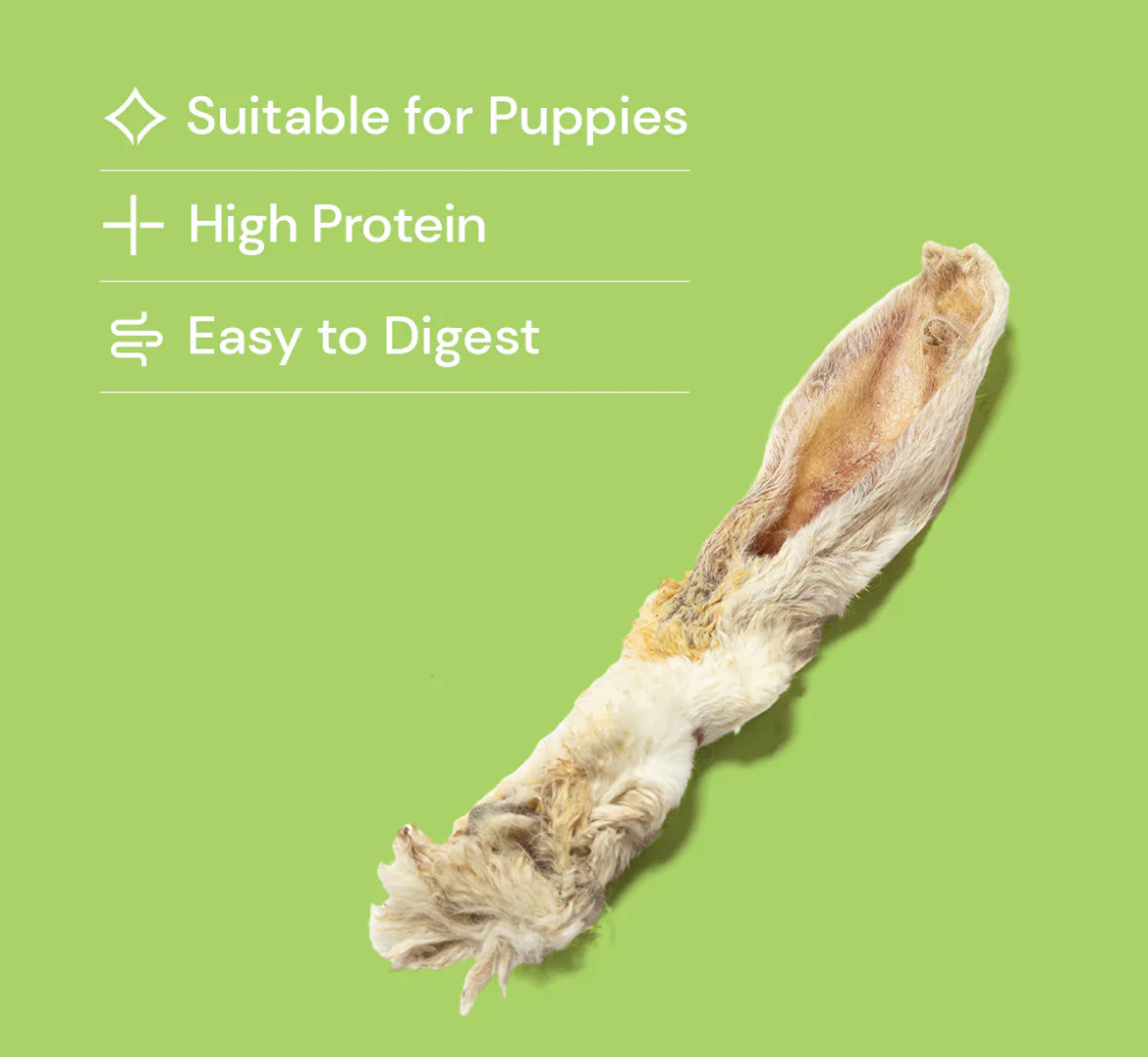 Our Hairy Rabbit Ears are a fantastic chew alternative to pigs and cows ears, especially for our smaller dogs! The addition of the fur is a good source of fibre and helps reduce parasites from the gut naturally!