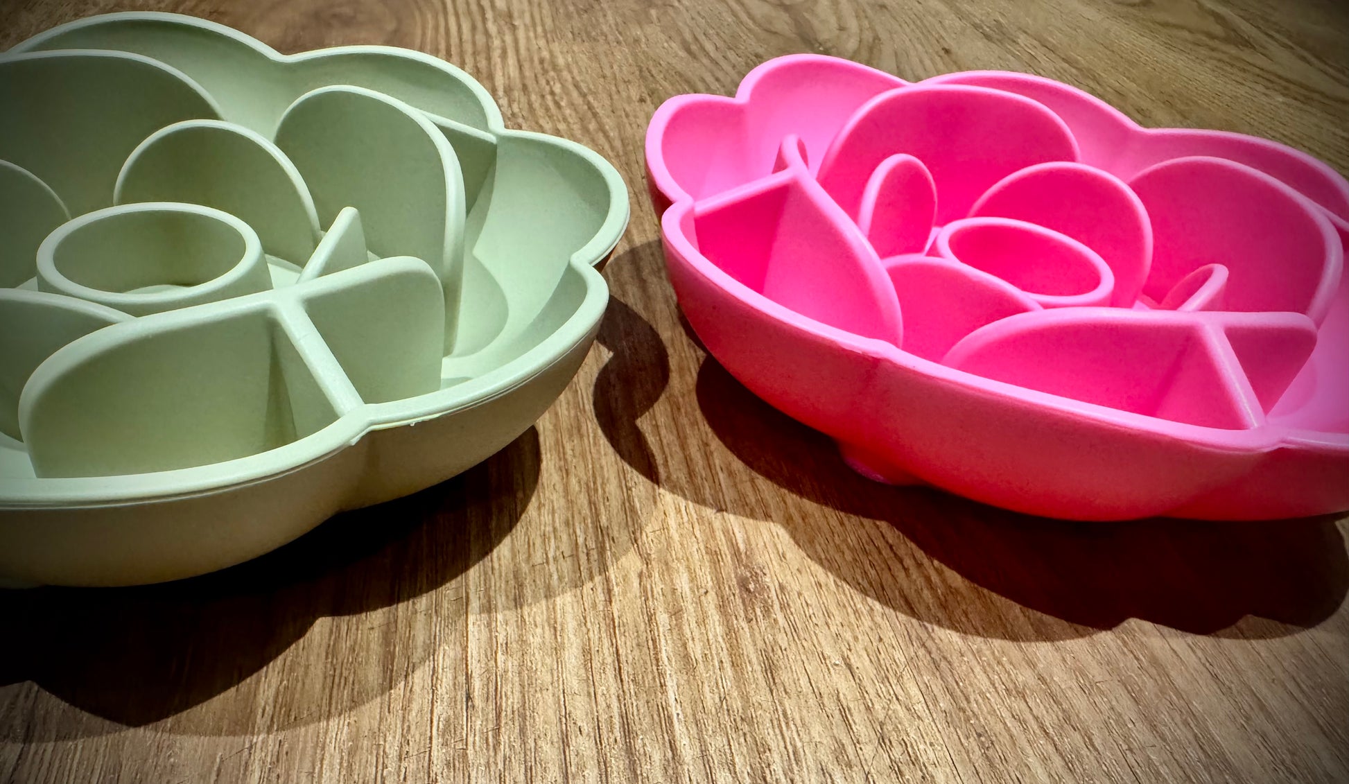 Beautiful rose style food grade silicone slow feeding bowls. Not only an eye catching and appealing show stopping slow feeder, a perfect addition to feeding time by slowing down those gobblers and creating an engaging and healthy experience. Strong suction bottom allows for secure attachment to most smooth surfaces