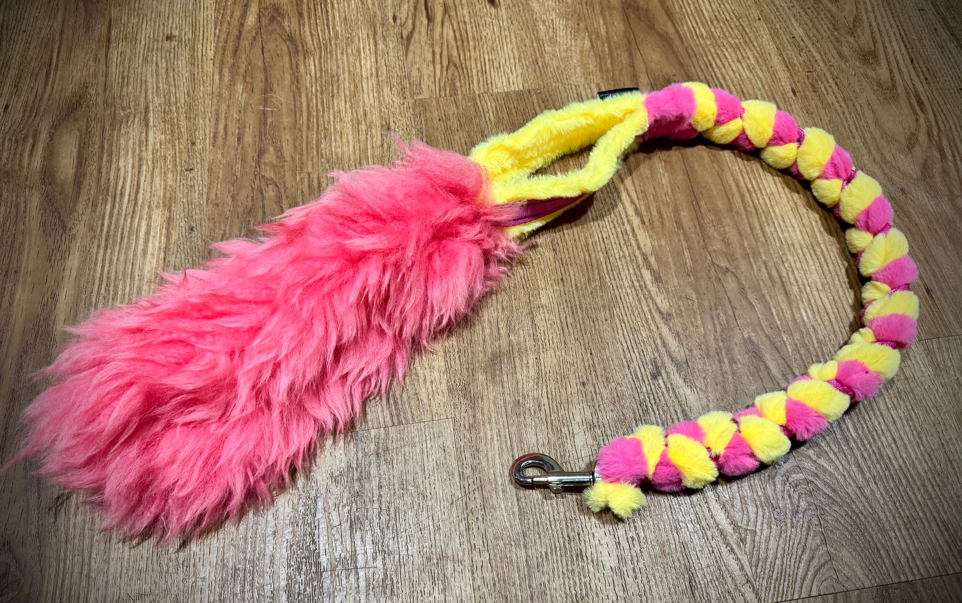 A 12 inch sheepskin tuggy attached to a FenForest fleece lead. Webbing through the lead and sheepskin for added strength and durability