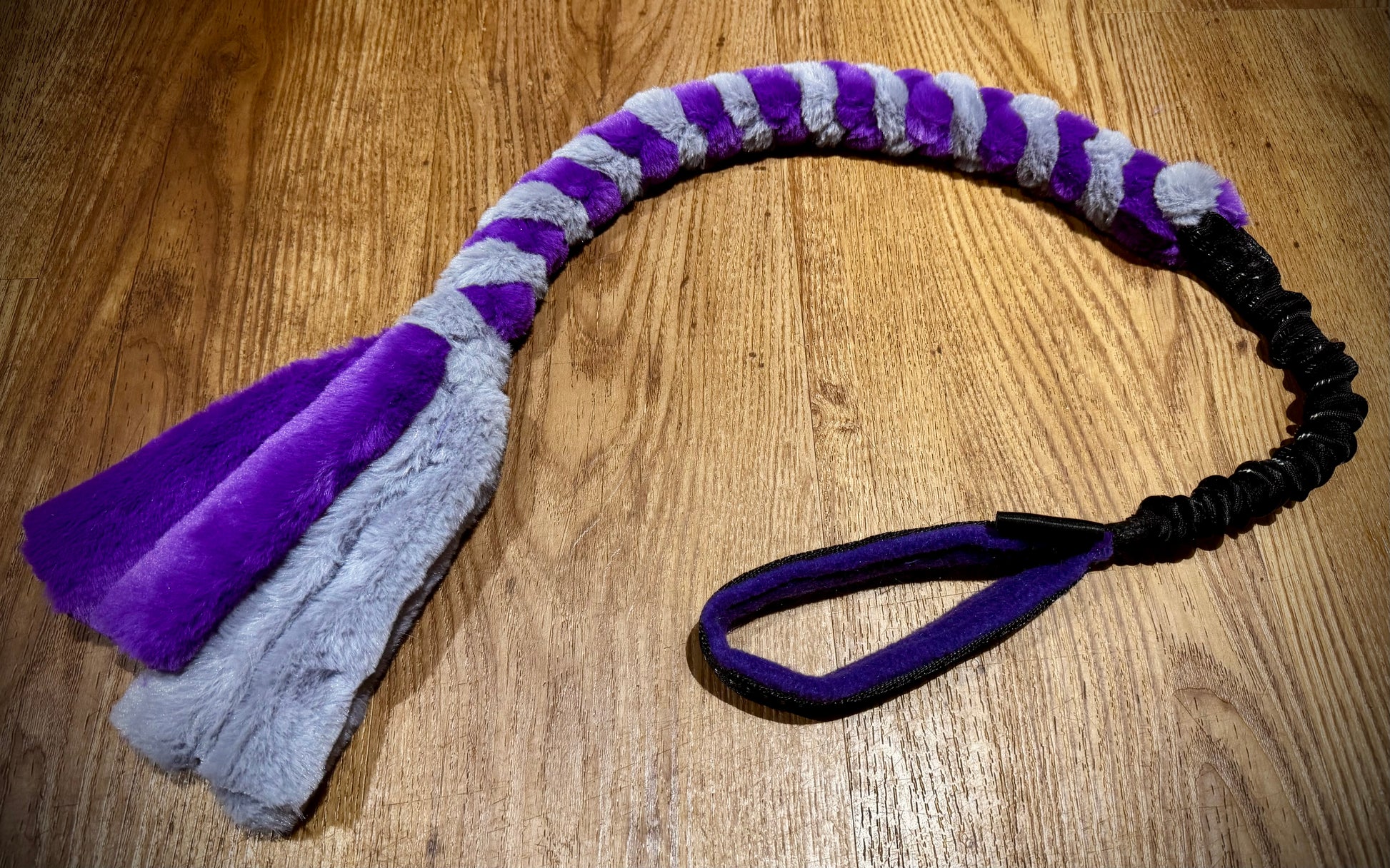 A short fluffed and super soft fabric, braided into a strong twister braid on a double bungee comfort handle.