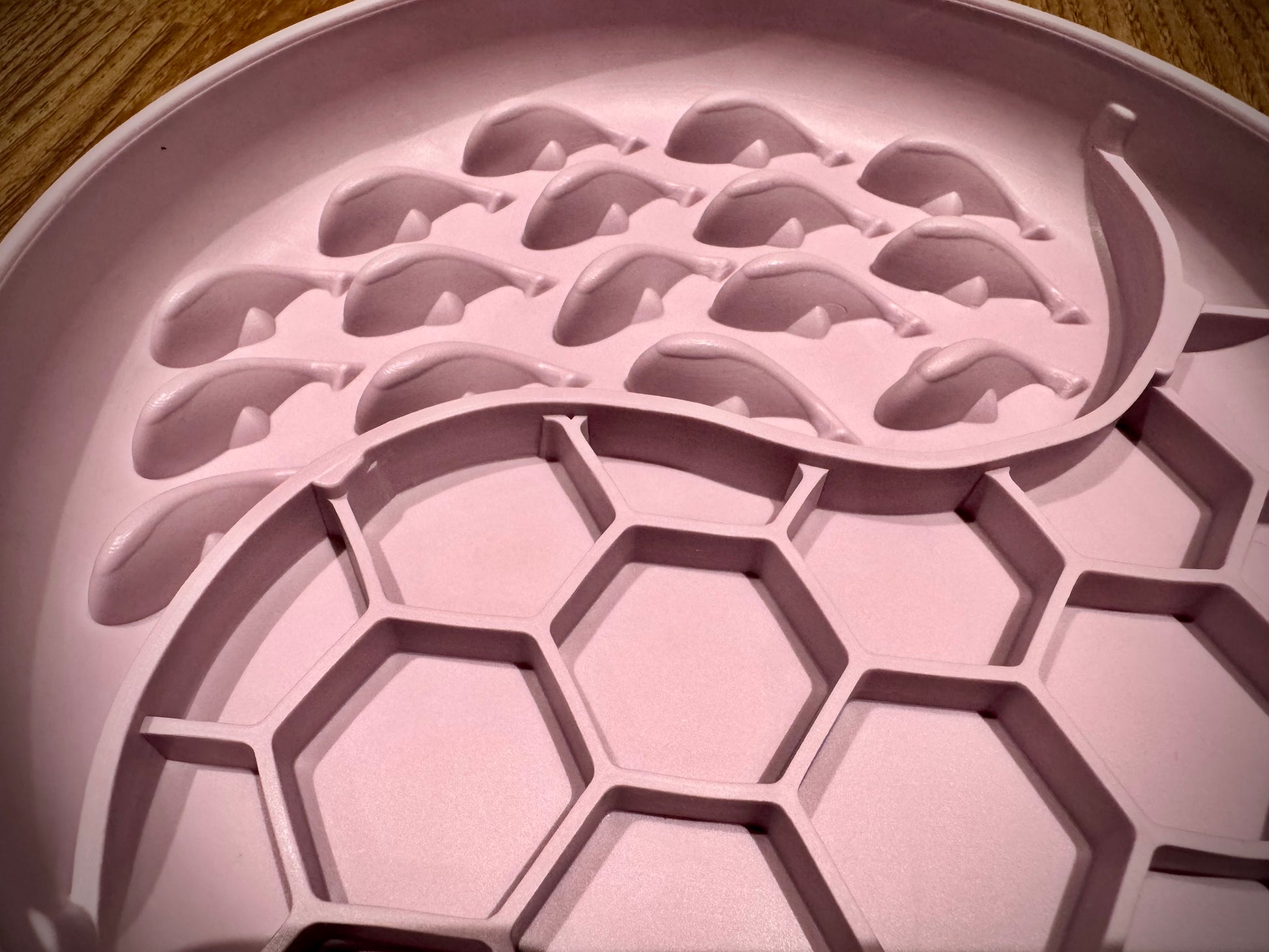 A gorgeous food grade silicone whale & honeycomb slow feeding bowl, not only cute but eye catching and appealing. The multi textured surface is stimulating and encouraging whilst slowing down those gobblers and creating an engaging and healthy experience. Strong suction bottom allows for secure attachment to most smooth surfaces